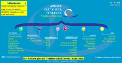 Dalla parte inferiore si accede alle "branchie" vere e proprie dell'AC: l'Azione Cattolica Ragazzi, il Settore Giovani, il Settore Adulti, il MIEAC (Movimento di Impegno Educativo di AC, una proposta per chi crede nel valore dell'educazione), il MSAC (Movimento Studenti) e il MLAC (Movimento Lavoratori, con le pagine in costruzione).