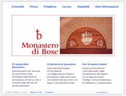 Il sito del Monastero di Bose offre un quadro preciso e aggiornato attorno alla vita della comunit� retta da Enzo Bianchi attraverso il quale � possibile attivare quei canali di approfondimento che consentono di mantenere vivo il legame con lo spirito costruttivo che emana la comunit� monastica.